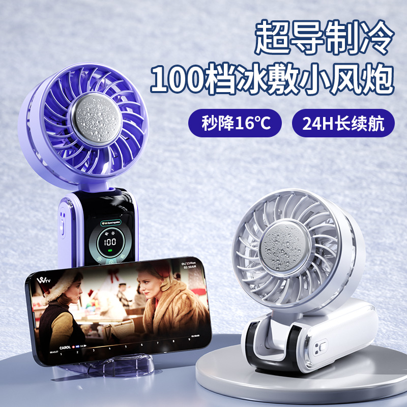 2025新型氷敷高速冷却タービンデジタル表示手持ち小型ファンUSB寮屋外折り畳みポータブル