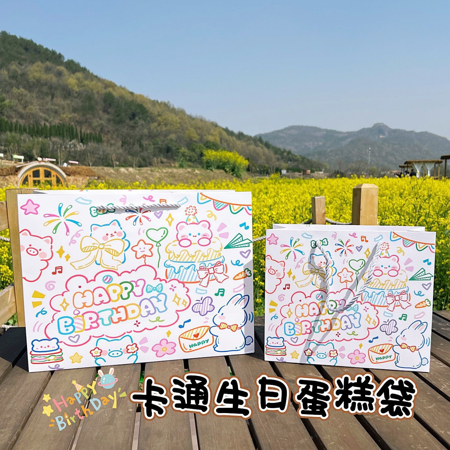 かわいい誕生日ケーキの手提げギフトバッグ子供の誕生日プレゼント包装insは白い紙袋を厚くして長持ちする