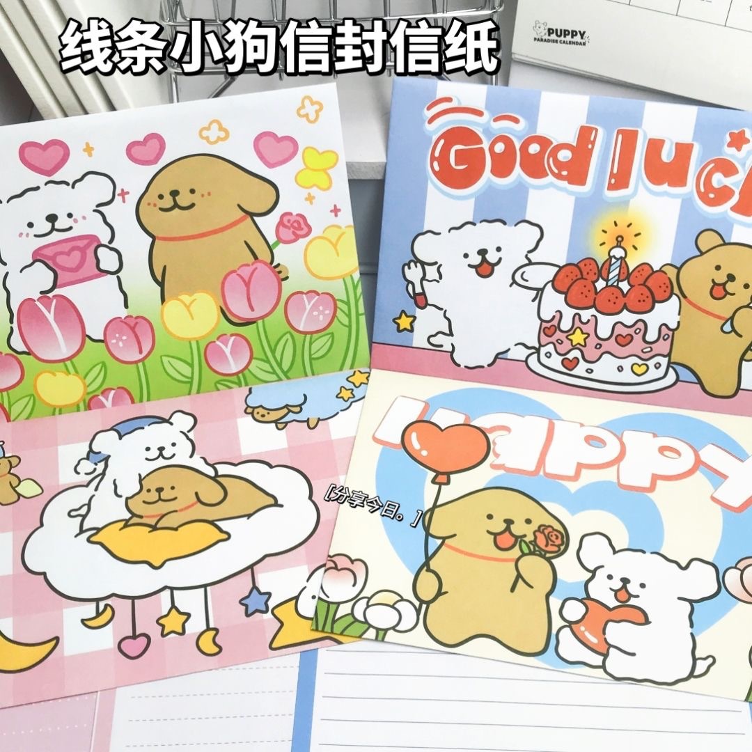 ライン子犬封筒レターins風かわいいアニメ漫画誕生日カードメッセージ告白祝福手作りdiy