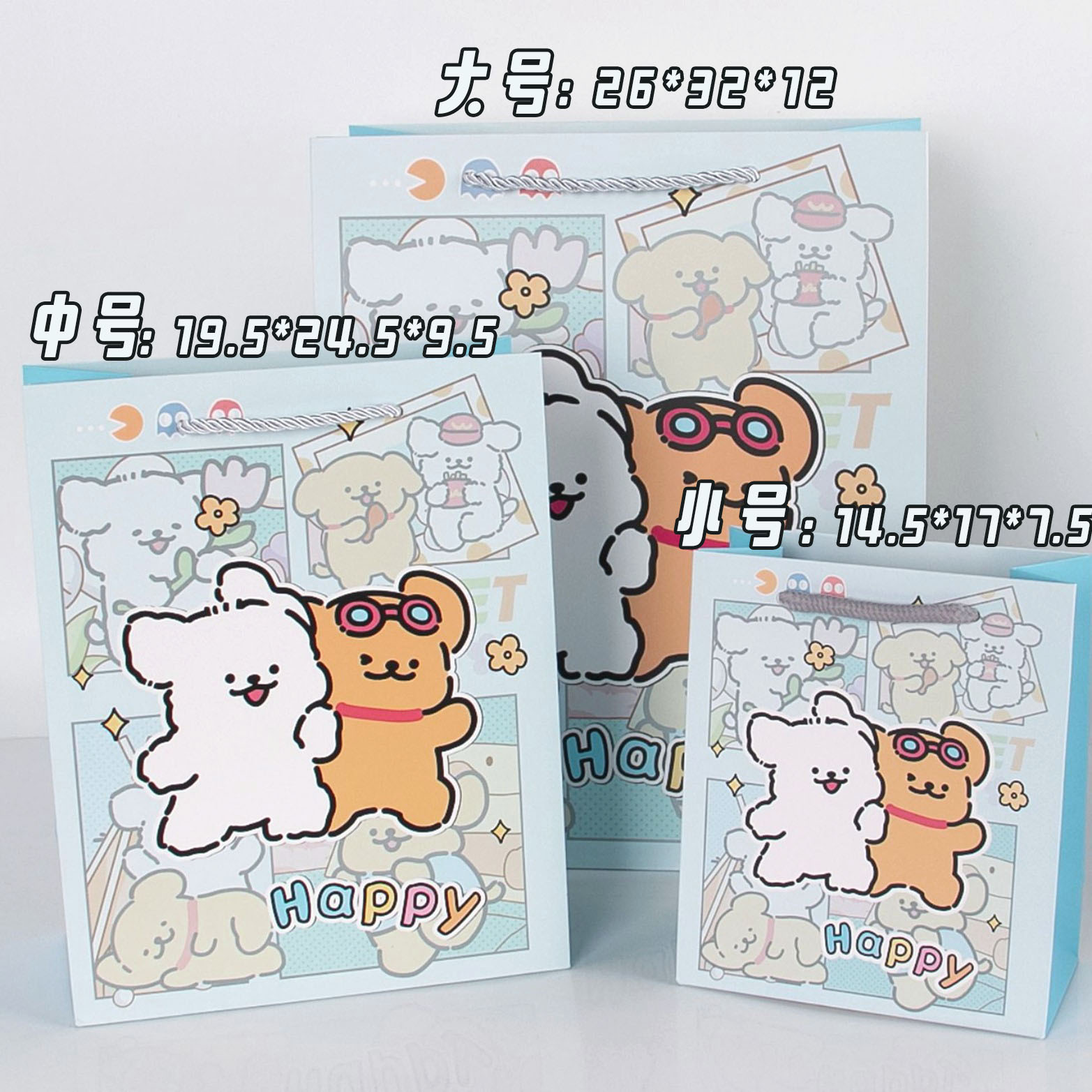 Ins風パッチャ犬ギフトバッグ誕生日プレゼント紙袋手提げクラフト紙袋耐久性かわいいアニメレジ袋