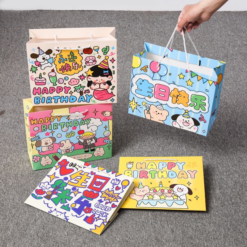 漫画の子犬の誕生日プレゼントの包装の厚い手提げ袋の紙袋の手描きの落書きの高い顔の値の大容量の白いカード