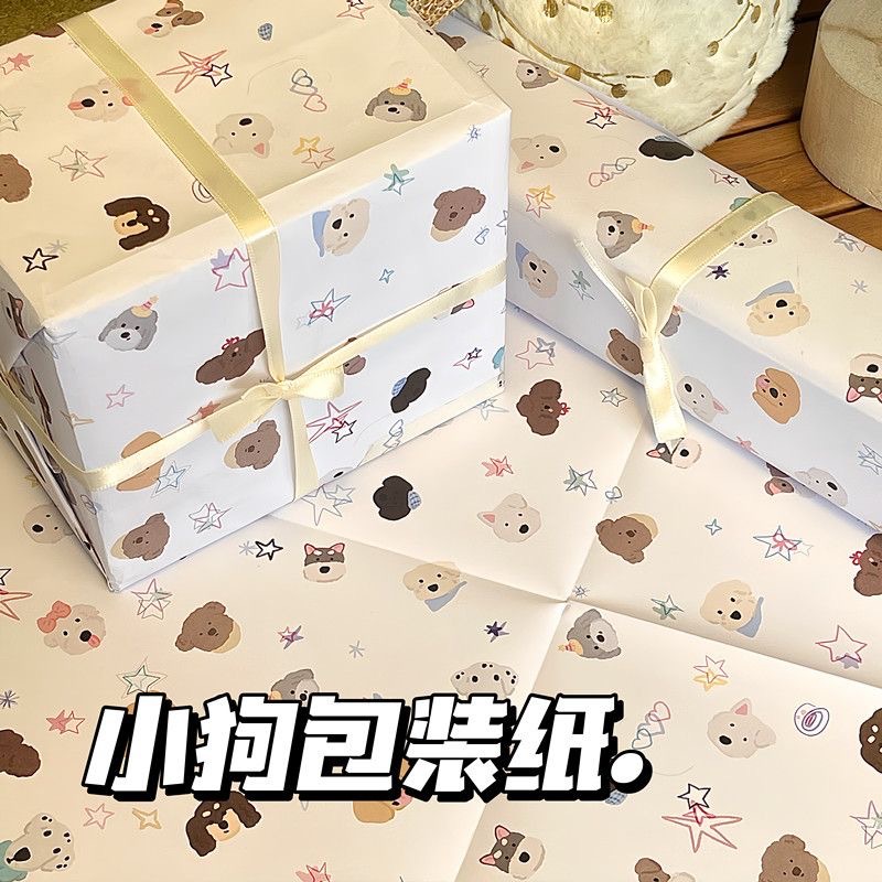 かわいい落书き子犬ギフト包装纸ins风高い颜値バレンタイン大きいサイズ诞生日ギフトボックス包装纸