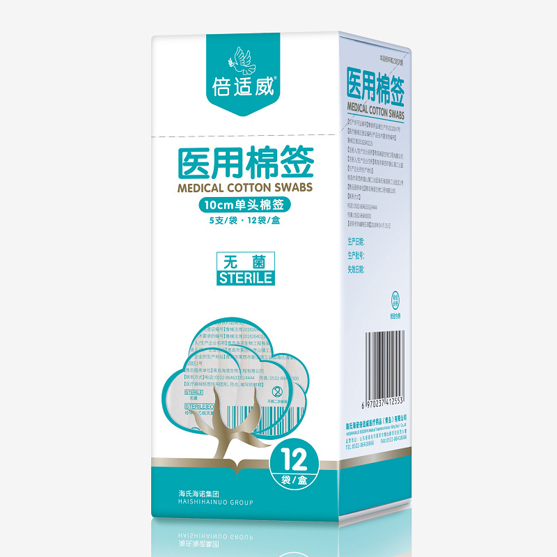 海氏海諾倍適威医療用綿棒10cm綿棒単頭綿棒無菌大頭綿棒