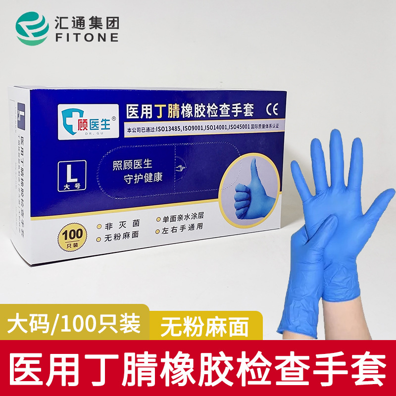 区医師医療用ニトリルゴム検査手袋抽出式医療用手袋100匹無粉麻面手袋