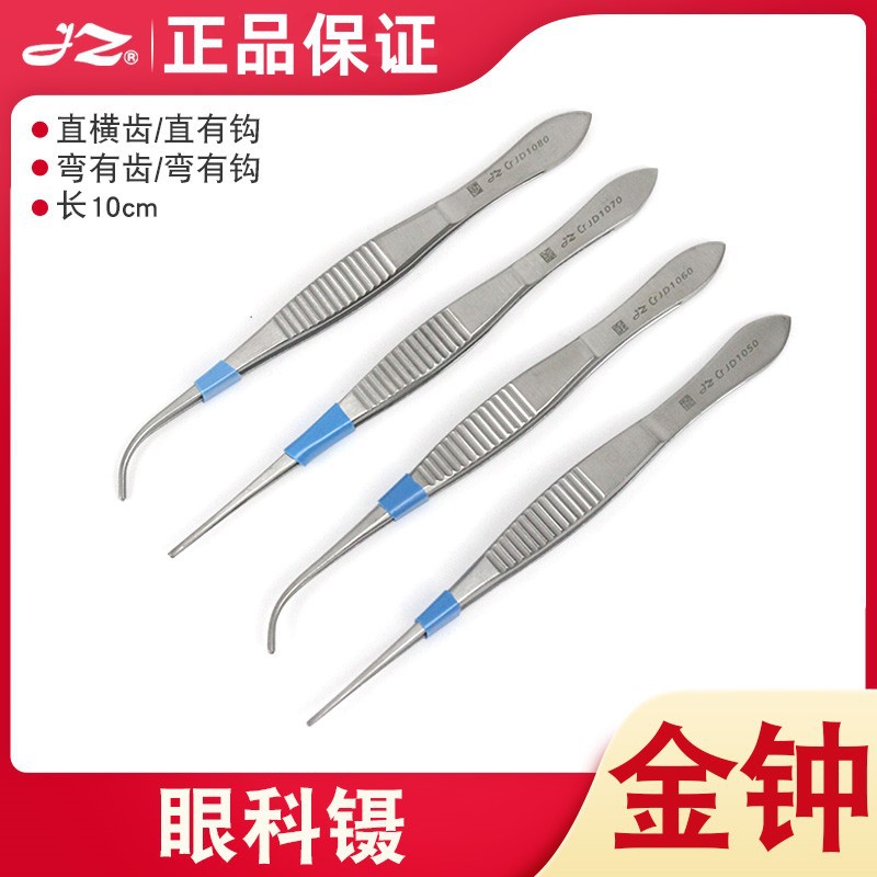 上海金鐘眼科ピンセット無メッキwd直型曲げ型横歯有フック眼用ピンセット10cm二重まぶたピンセット