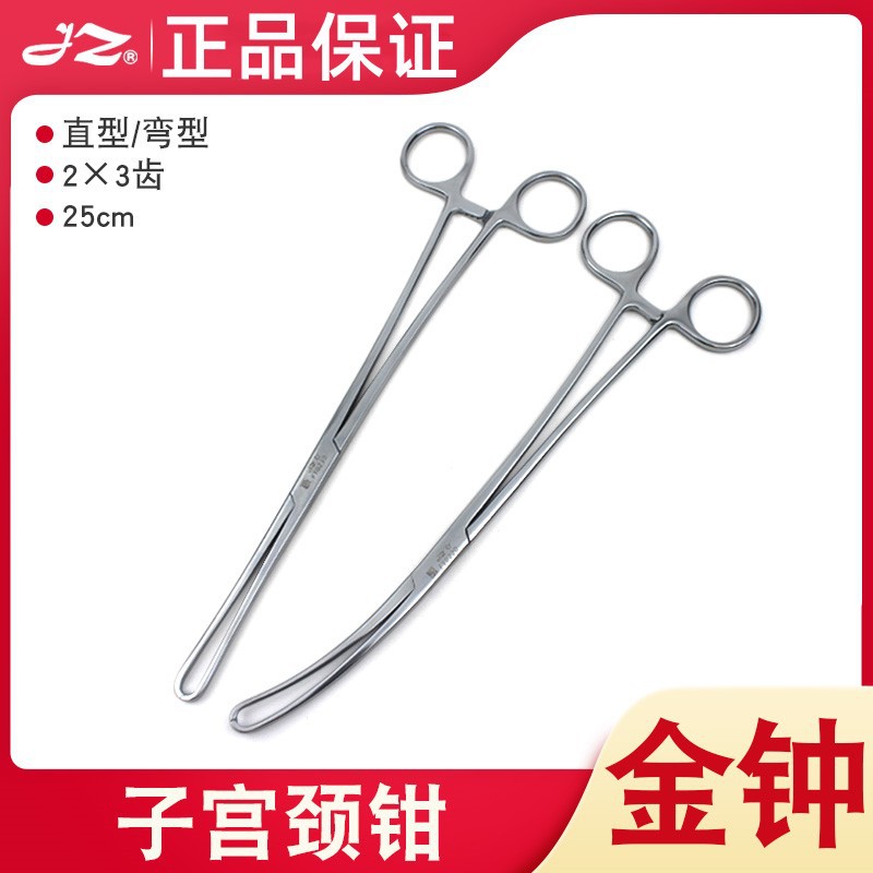 上海金鐘子宮頚鉗子婦人科子宮頚鉗子2x3歯直エルボ25cm婦人科子宮取物鉗子