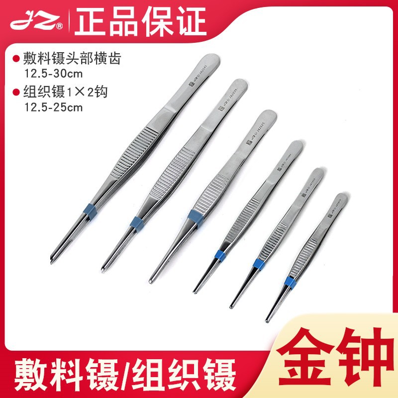 上海金鐘ドレッシングピンセット医療用ピンセット125-30cmステンレス横歯補助材料ピンセット丸頭クリップ大ピンセット