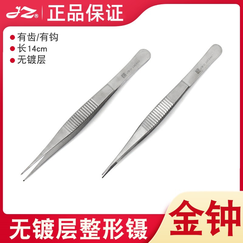 上海金鐘整形ピンセット14cm細い先端美容ピンセット幅08有歯ピンセット無メッキ整形ピンセット