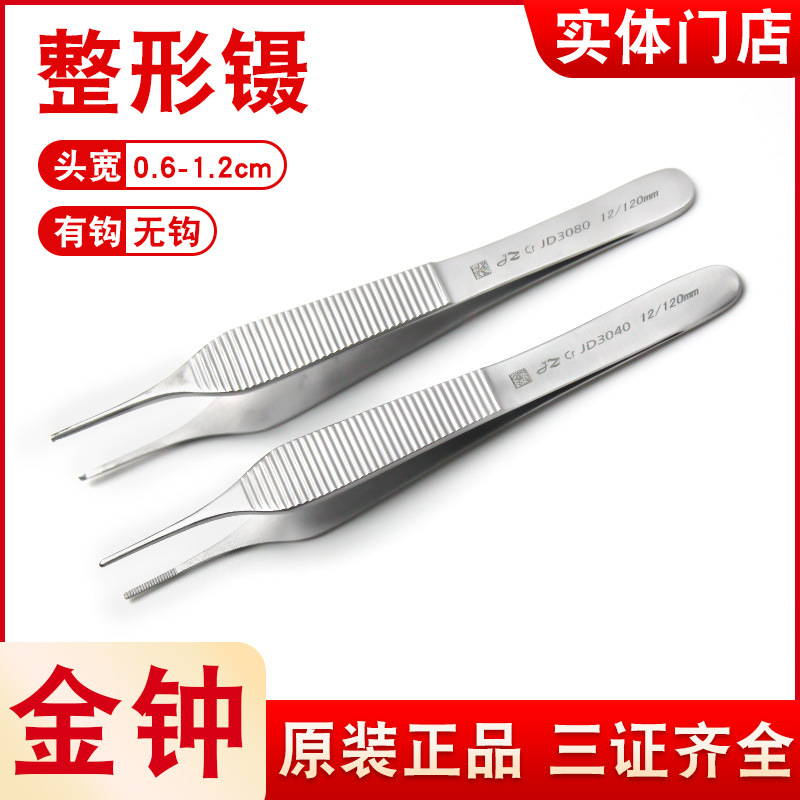 上海金鐘眼科ピンセット用ピンセット10cm直エルボ有歯フック二重まぶた美容整形手術ピンセット