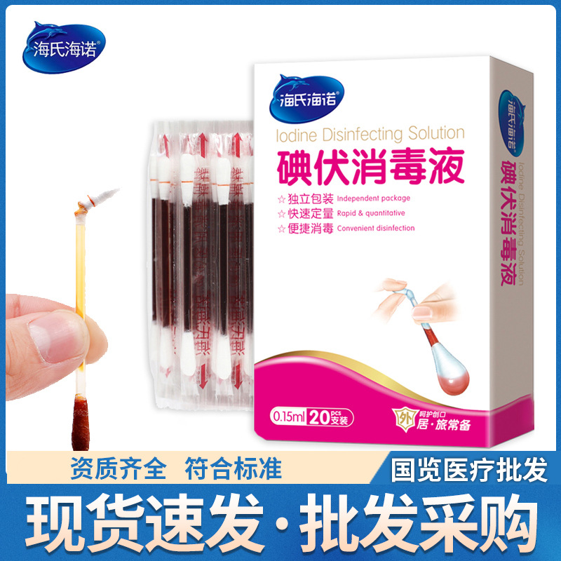 海氏海諾ヨードボルト医療消毒綿棒使い捨て家庭用携帯ヨウ素酒消毒液綿棒20本