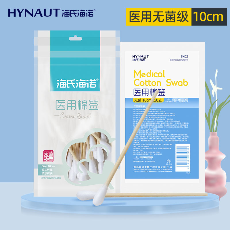 海氏海諾医療用綿棒10cm医療用脱脂綿花球使い捨て消毒8cm片頭綿棒