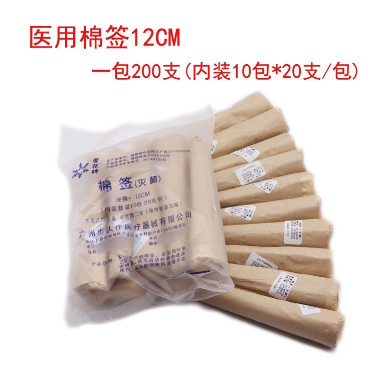 スノーブランド綿棒紙バッグ綿棒使い捨て化粧用消毒小さな綿棒紙包装200本単頭12cm