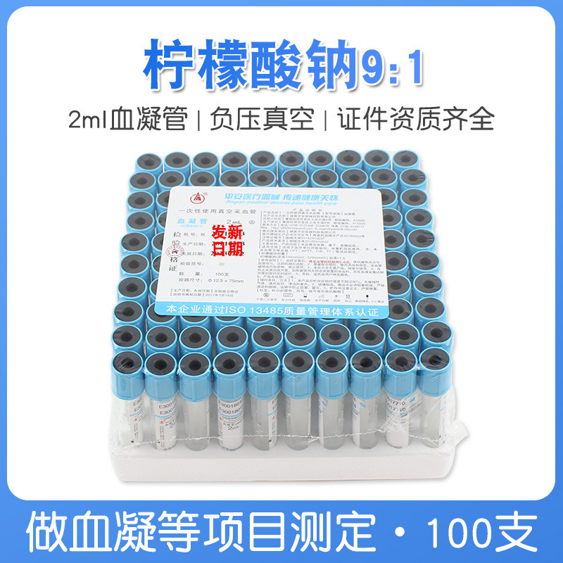 平安クエン酸ナトリウム91採血管2ml血液凝固管採血ブルーキャップクエン酸ナトリウム真空負圧採血管