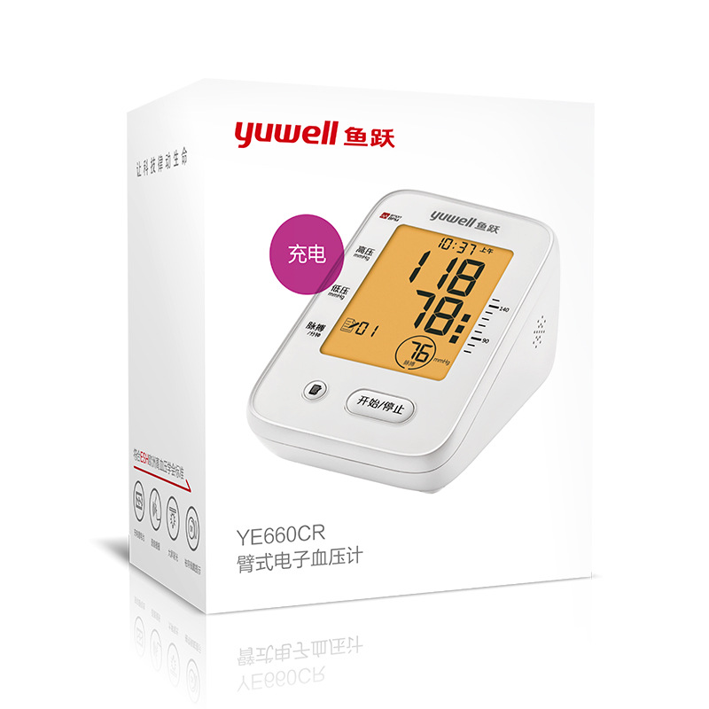 Yuyue 充電式電子血圧計 660CR 家庭用上腕音声バックライト充電式血圧計測定器