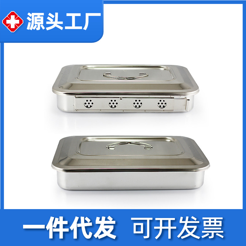 304ステンレス消毒盤蓋付き角皿蓋付き消毒角皿消毒箱穴付き手術トレー器具箱