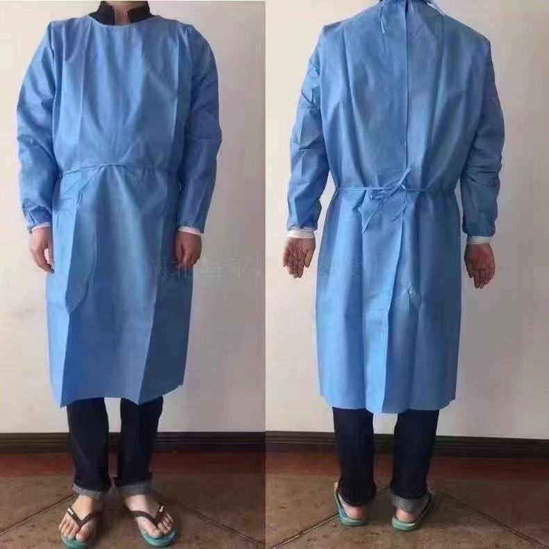 広州メーカー足45グラム新型使い捨て隔離服smsブルー防護服不織布反着厚