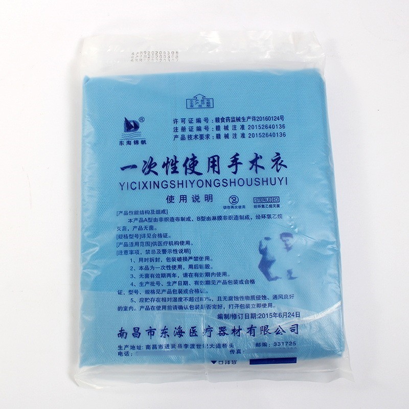 東海使い捨て手術服厚い防水通気隔離服単独防護服防塵無菌服シート