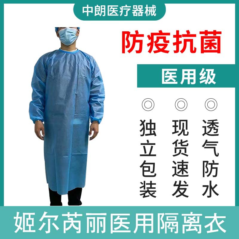 広州メーカー足45グラム新型使い捨て隔離服smsブルー防護服不織布反着厚