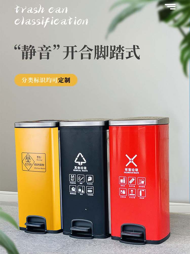 医療廃棄物足踏み式病院診療所黄色大トランペット円形生活分類ステンレスゴミ箱