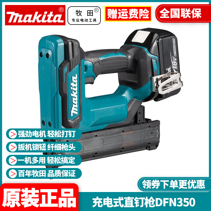 卸牧田マキタ充電直釘銃DFN350無線リチウム電気電気電気ガス釘銃18V内装木工