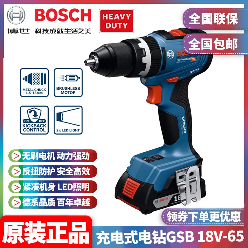 卸売り博世BOSCH充電式衝撃ドリル18vリチウム電気ドリル多機能ブラシレス手動ドリルGSB18V-65