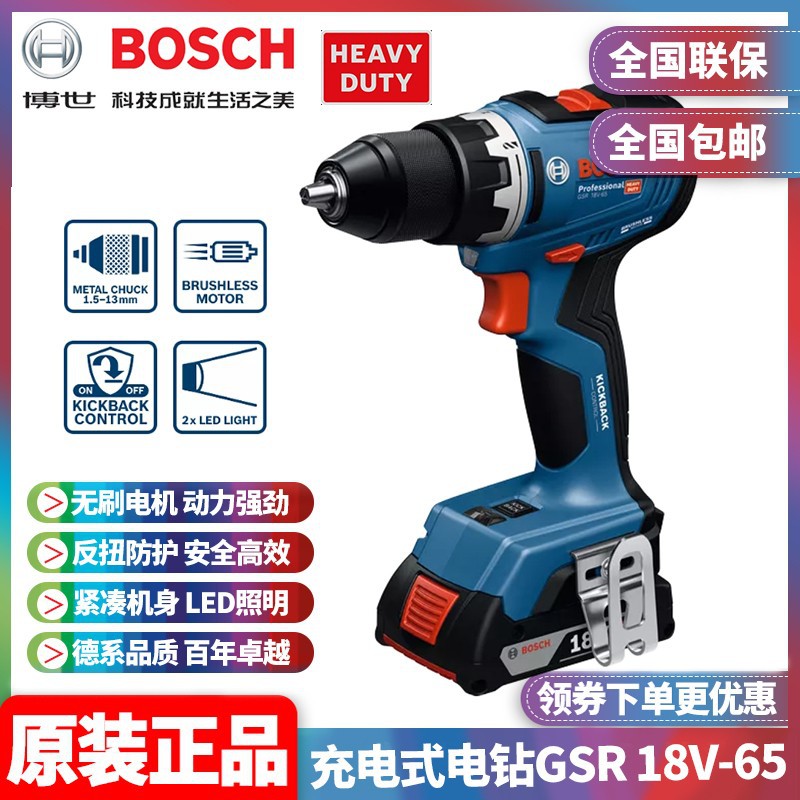 卸売り博世BOSCH充電式電気ドリル18vリチウム電気ドリル多機能ブラシレスドライバーGSR18V-65