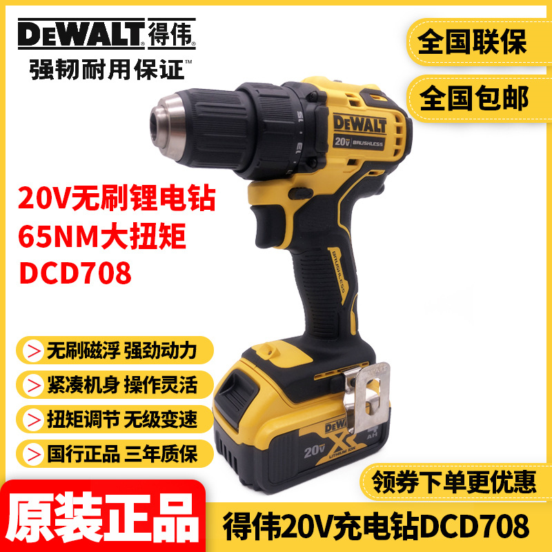 卸売りは偉DEWALTリチウム電気ブラシレス20v充電ドリル電動ドライバーDCD708NT/M2を得た