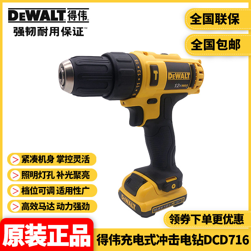 オリジナル DEWALT 多機能 12V ドライバー ドライバー リチウム充電式インパクトドリル DCD716DK2