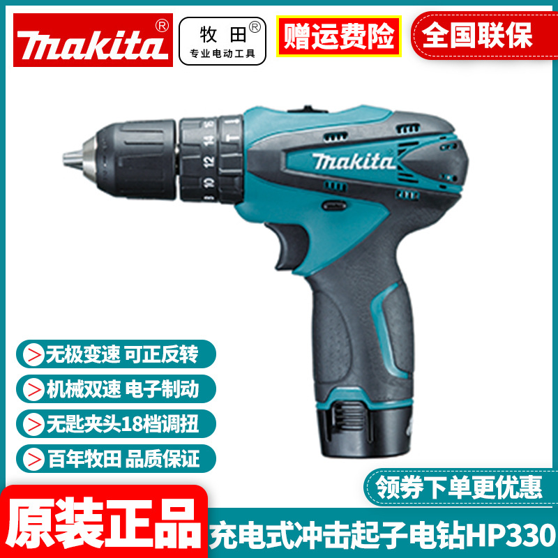 卸牧田マキタ充電式ドライバーインパクトドリルHP330家庭用電気ドリル電動ドライバー