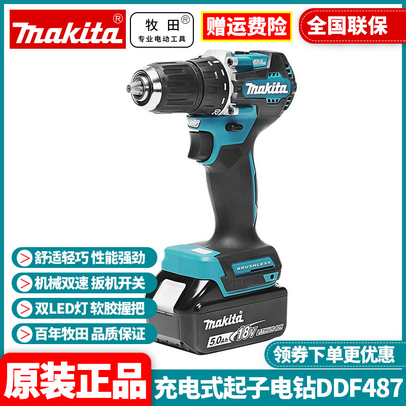 卸牧田マキタ充電ドリルDDF487リチウム電気ブラシレス軽量電動ドライバー起動機インパクトドリル