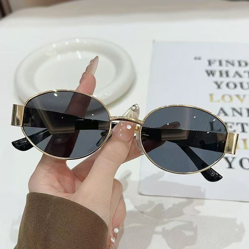 女性用レトロメタルスモールフレームサングラス、トレンディでハイエンドなストリートスタイル、オールドマネースタイル、新しい抗UVサングラス、香港スタイル