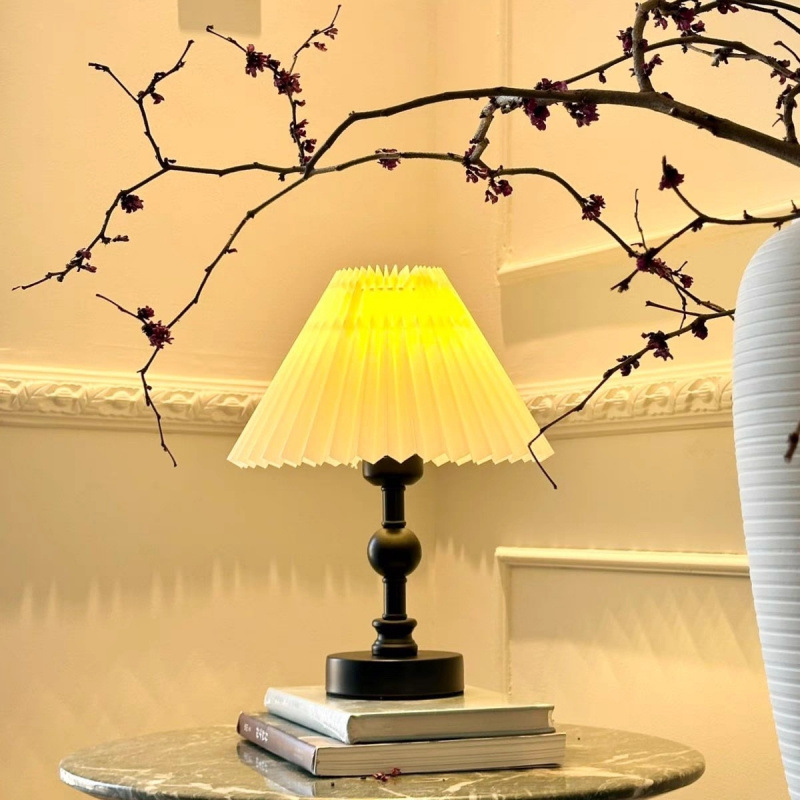プリーツテーブルランプ寝室のベッドサイドランプ生地中世レトロフレンチシンプルな装飾装飾品ナイトライト