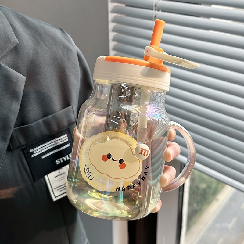 グラス女性高颜値カップ高温茶水分離カップins茶漏れストロー大容量ハンドルカップ