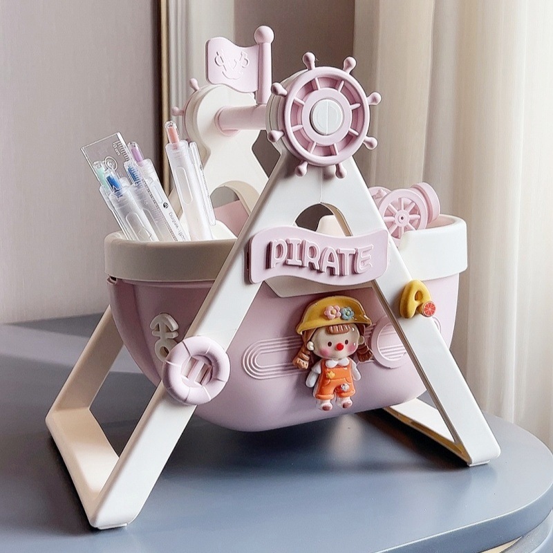 高颜値萌趣筆筒海賊船かわいい創意学生子供デスクトップ多機能文房具収納ケースプレゼント