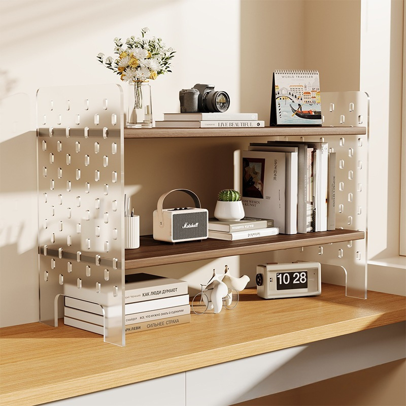 風の学生のデスクトップの本棚は机の多層の机の上の穴の板の事務室のステーションの収納棚を学びます。