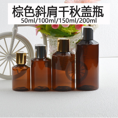 50ml 100ml 150ml 200ml斜めの肩のテーパーの茶色の電化のアルミニウムの千秋の蓋のプラスチックpetの瓶のジェルの水の瓶