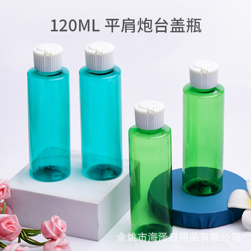 120ml砲台蓋フラットショルダーカラー24口pet爽やかウォーターボトルストレッチ蓋ボトル液体プラスチックボトル化粧品ボトル