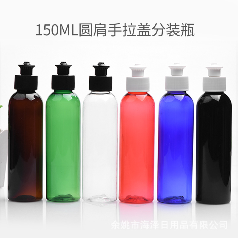 150ml丸肩ボトル24口プラスチックpetボトルと手で蓋をした液体ボトル