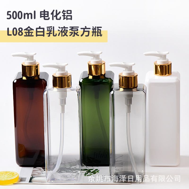 500ml角型28口プラスチックpetボトルと電気化アルミねじポンプ、乳液ポンプ、消毒無洗液ボトル