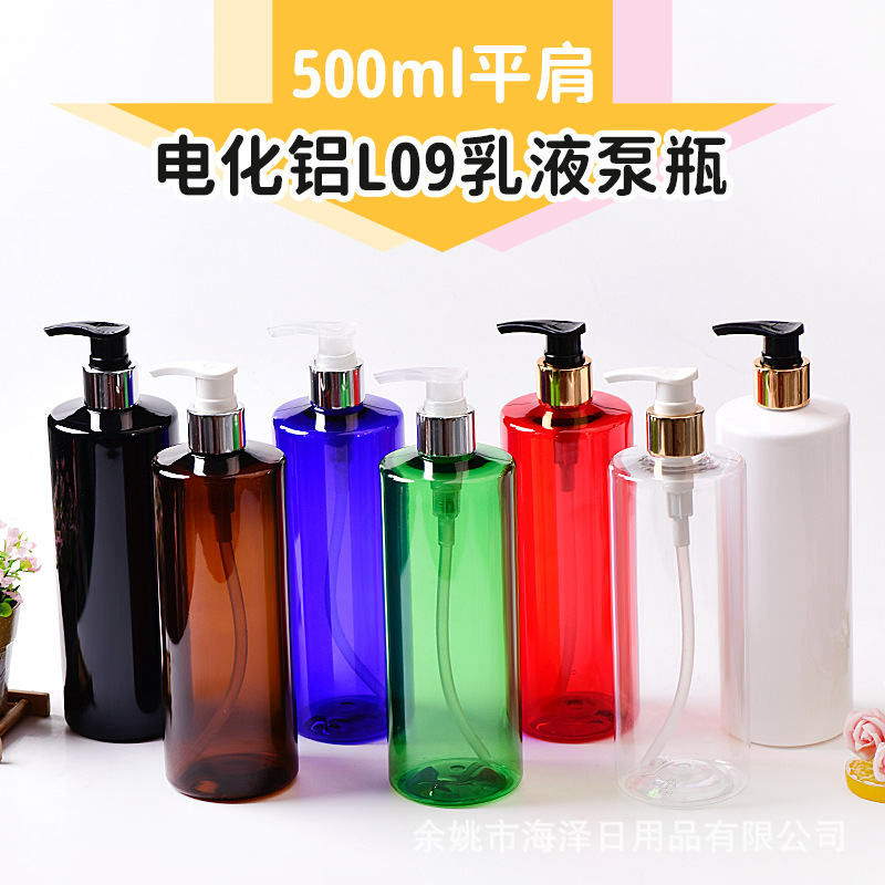 500ml平肩24口プラスチックpetボトルには、電気化アルミねじポンプ、ローションポンプ、消毒洗浄液ボトルがついている
