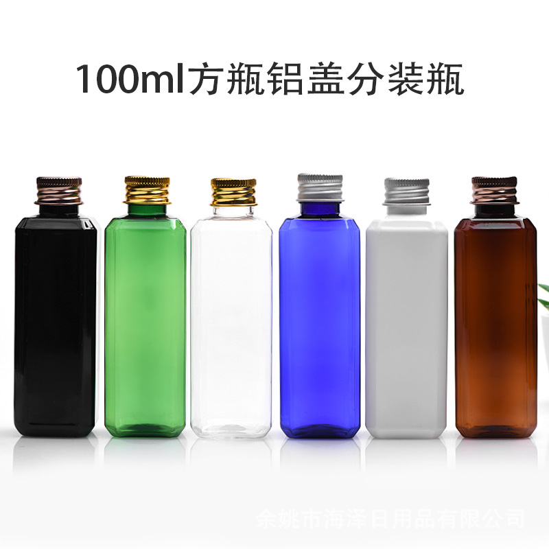 100mlの角瓶の多彩な花露の瓶のプラスチックのpetの瓶のアルミニウムの蓋は内栓の金属の蓋の液体の乳液の瓶を配合することができます。