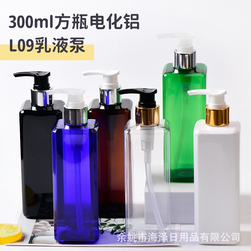 300ml角瓶プラスチックpetボトル24口配电化アルミねじポンプシャンプーボトルローションポンプ