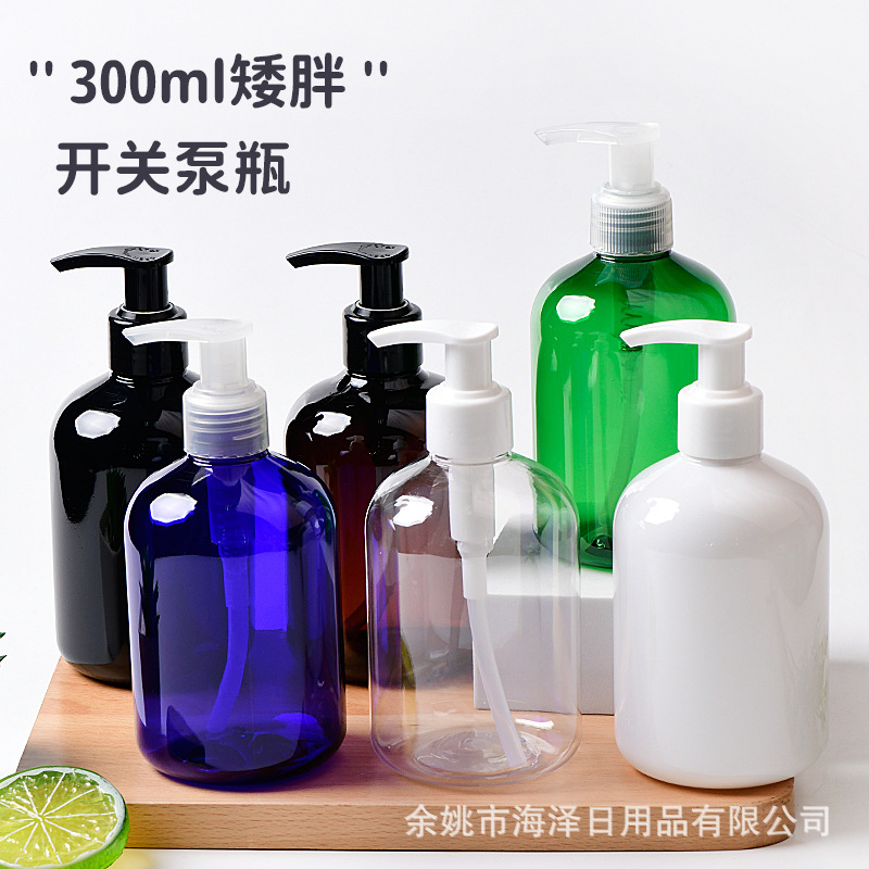 300mlの低い太った24口のプラスチックpet瓶とスイッチポンプの左右のスイッチポンプの瓶の美容室のツールの乳液の瓶