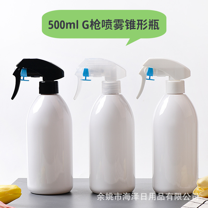 500mlのテーパーボトル28口のプラスチックpetボトルにgガンの細いスプレーヘッドがついています。