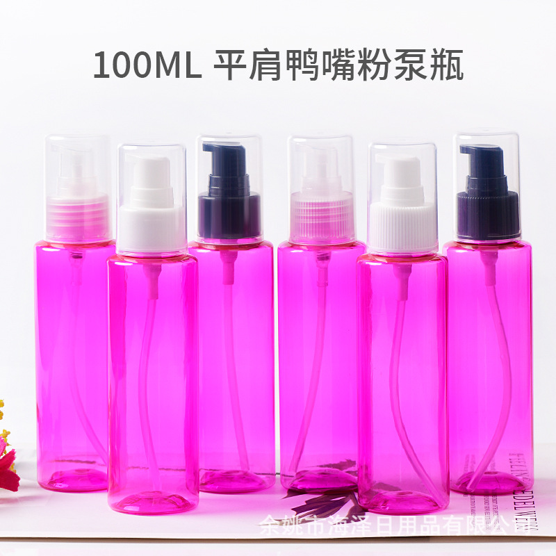 100ml平肩24歯プラスチックpetボトルとアヒル口粉ポンプシャンプーボトル押圧ポンプローションボトル
