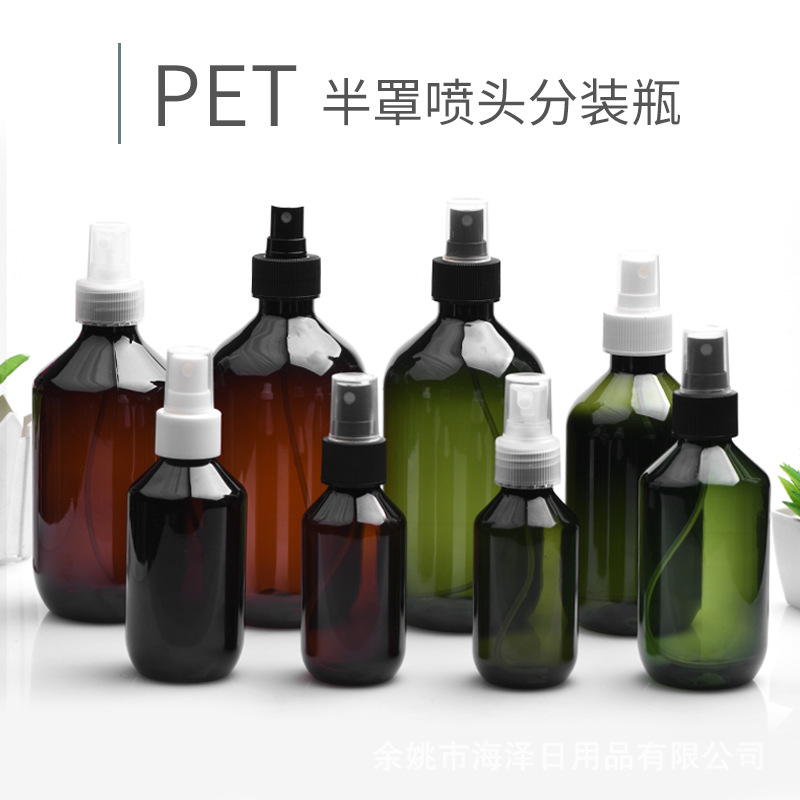 100mlフラットボトルとプラスチックpetボトル20口半カバーノズル香水瓶噴霧細スプレーボトル携帯