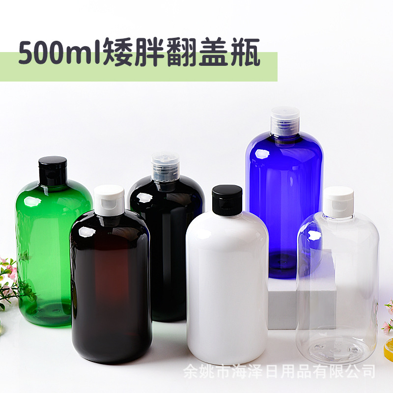 500mlの低い太った24口のプラスチックpetボトルとふたを開けて水筒の美容道具を洗って液体ボトルを掃除する