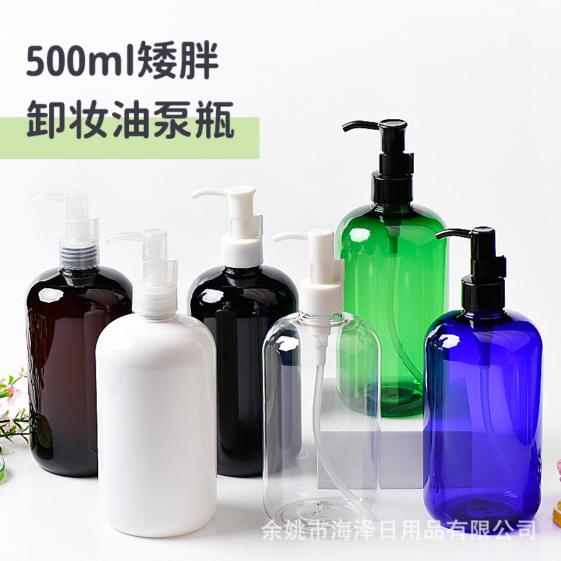 500mlの低い太った24口プラスチックpetボトルとクレンジングオイルポンプシャンプーボトルのボタン式スイッチ化粧ボトル