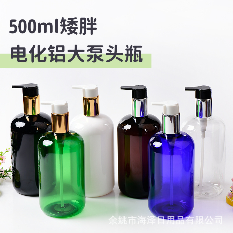 500mlの低い太った24口のプラスチックpet瓶と電気化アルミニウムの大きいポンプの頭を配合して水筒の美容用品を洗います。