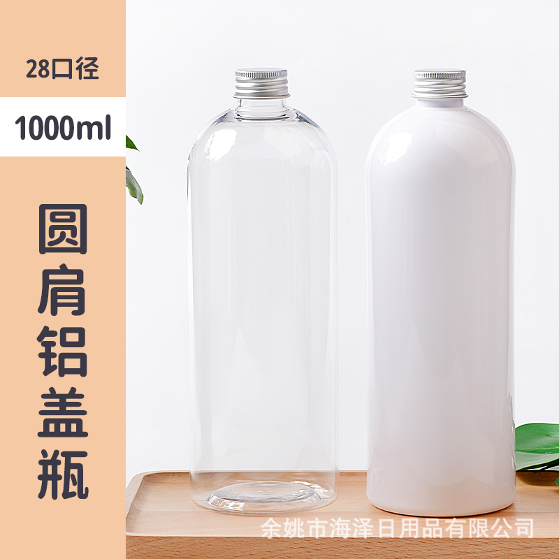 1000ml丸肩28口プラスチックpetボトルアルミキャップ金属キャップ付き液体ローションボトル大容量